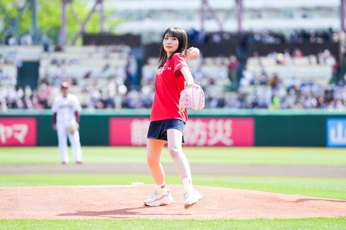 動画 秋元真夏、「大ボケ」始球式!